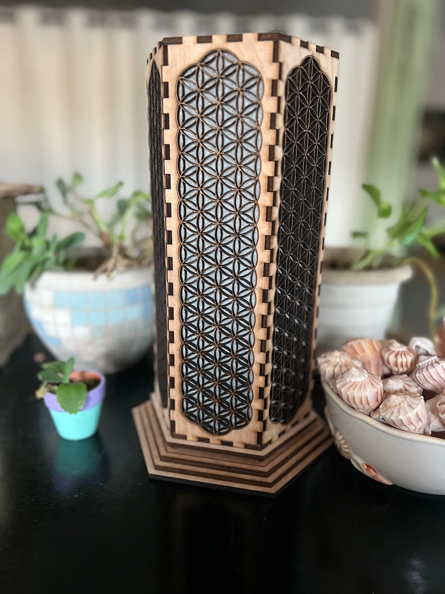 A simple, functional incense holder featuring the Flower of Life pattern. Designed to complement the Light Prism collection while remaining minimal and grounded.